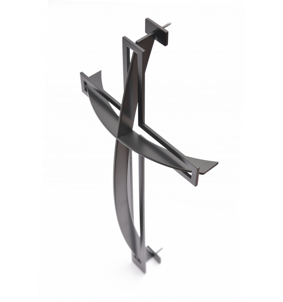 Krzyż wiszący ze stali nierdzewnej złożony z dwóch części. Malowany proszkowo