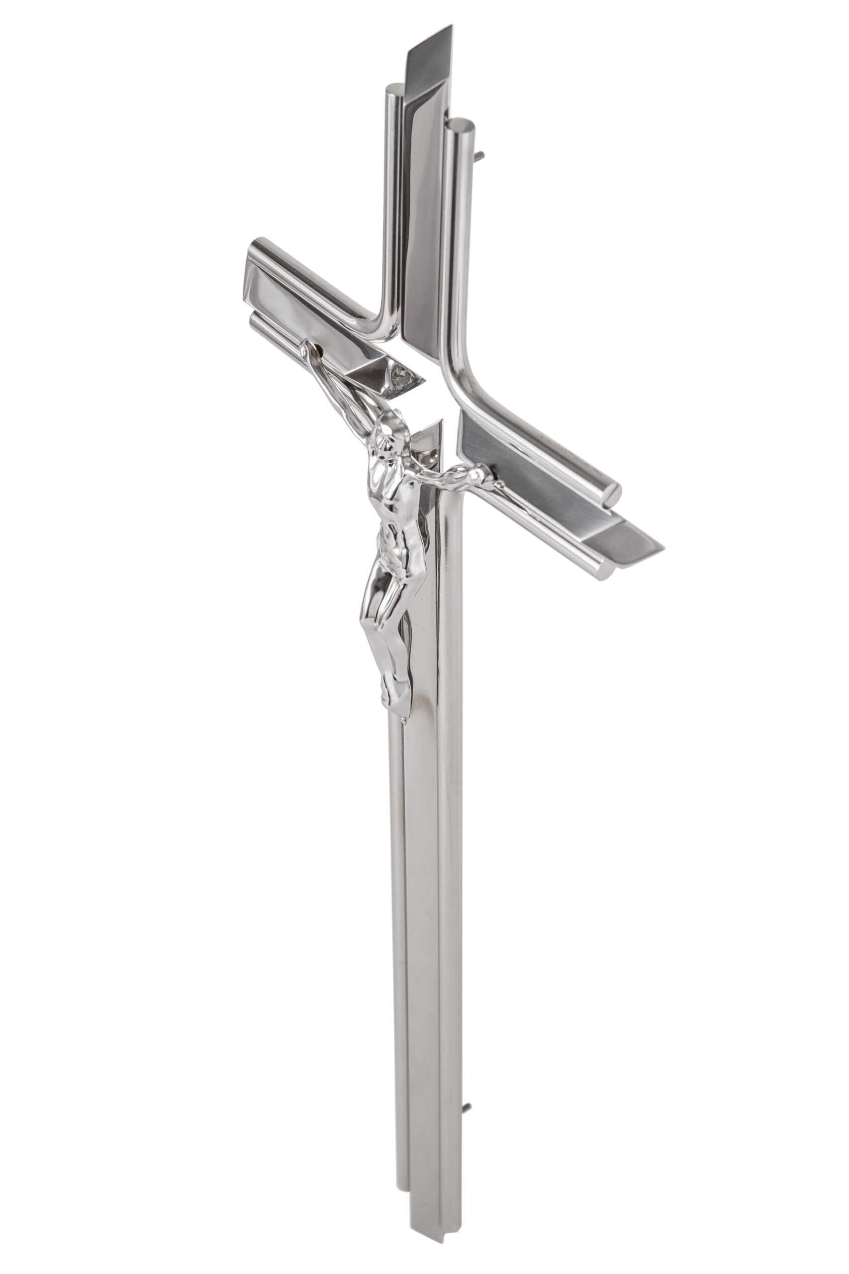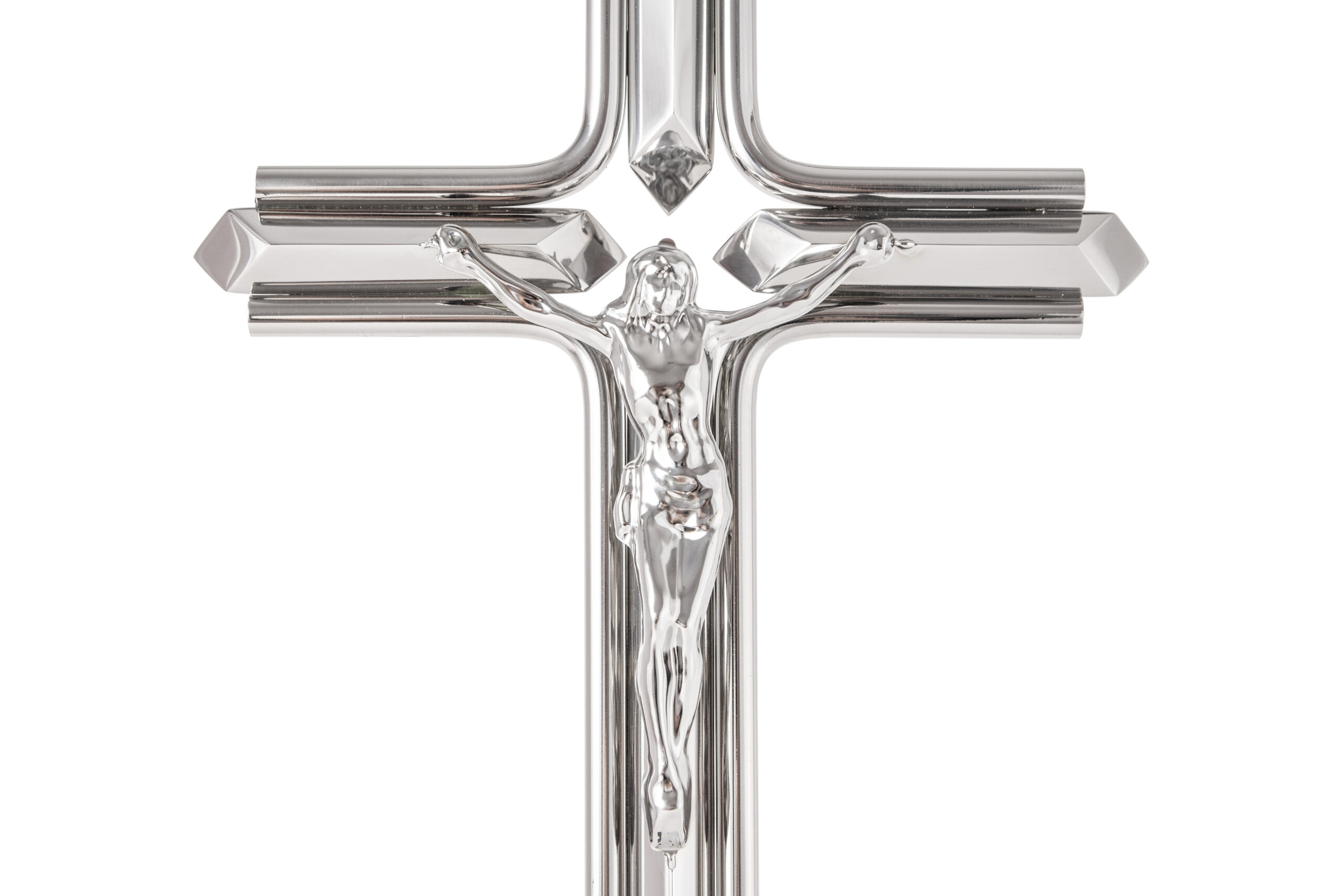 Krzyż przestrzenny KP4/1 wiszący, wykonany ze stali nierdzewnej, polerowany.