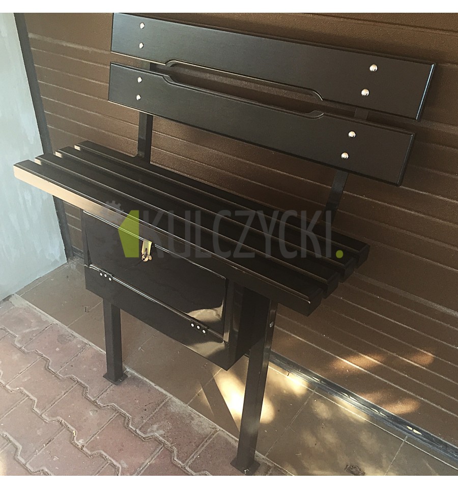 Ławka cmentarna, nie składana, z wygodnym oparciem i przydatnym, zamykanym schowkiem.